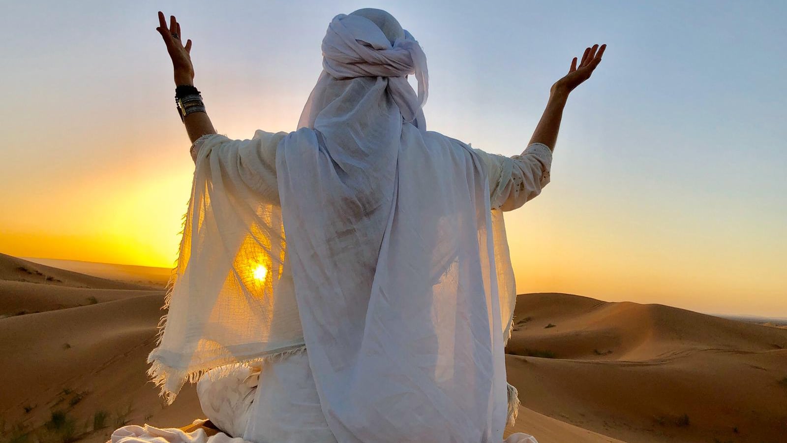 Mit dem Flugzeug geht es nach Marrakech. Von dort werden wir abgeholt und fahren zur Wüste. Nach der ersten Nacht in einem Hotel satteln wir auf die Kamele um und reisen mit der Karawane tief hinein in die Sahara zum Wüstencamp meiner Familie. Dort verbringen wir mindestens sechs Tage inmitten der Magie der Wüste, abseits von unnötiger Kommunikation, von zu viel Handy und Internet und Reizen. Wir finden zurück zum Ursprung dessen, was uns ausmacht, kommen zur Ruhe, kommen bei uns an.